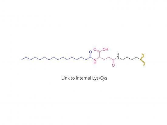GLP-1 amino acid sequence with palmitic acid attached via glutamic acid linker to the epsilon-amino group of lysine 26.